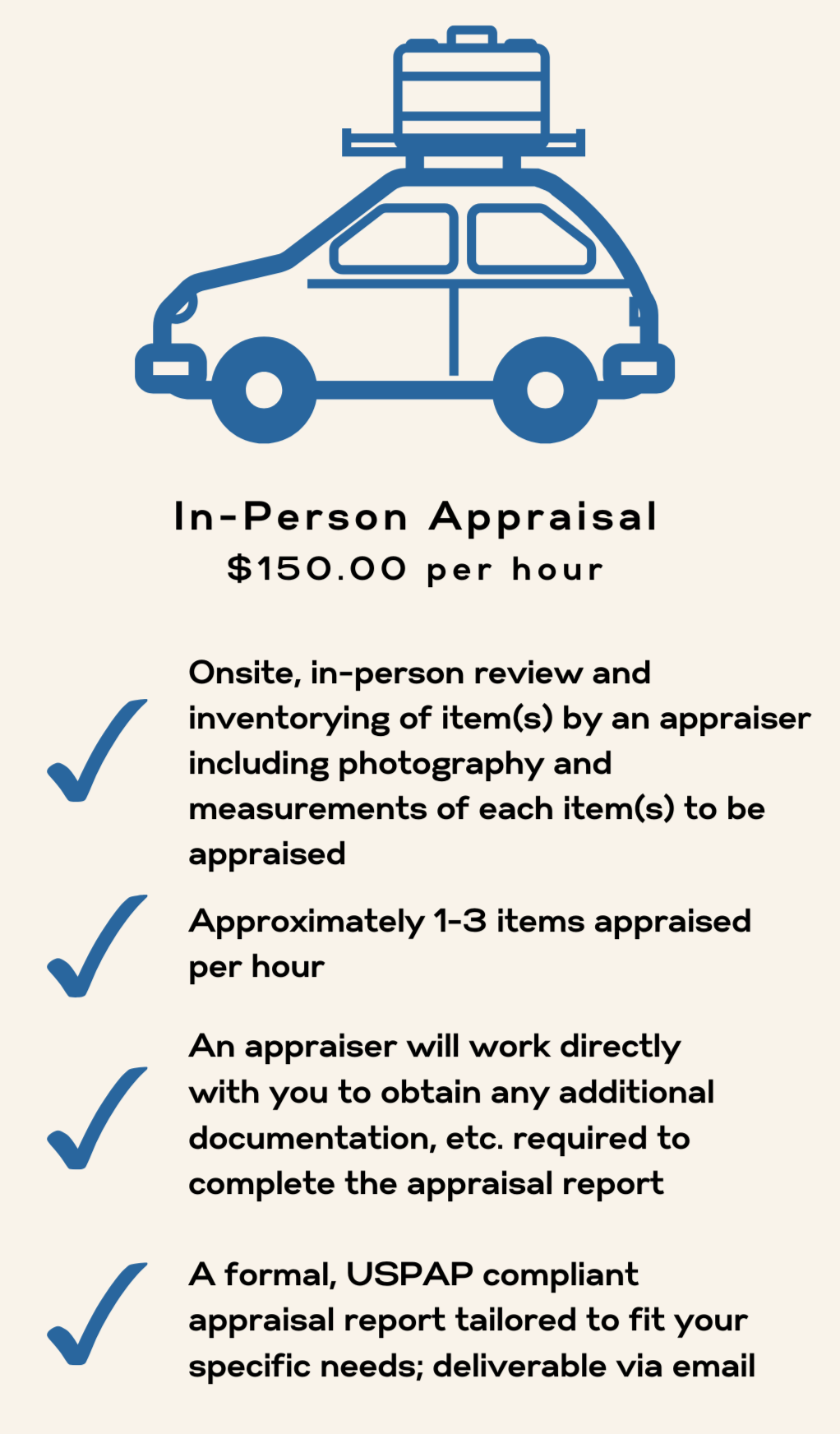 Do you ever find yourself wondering the value of a particular item or of a collection you’ve inherited? If so, an appraisal of your object(s) may be in order.