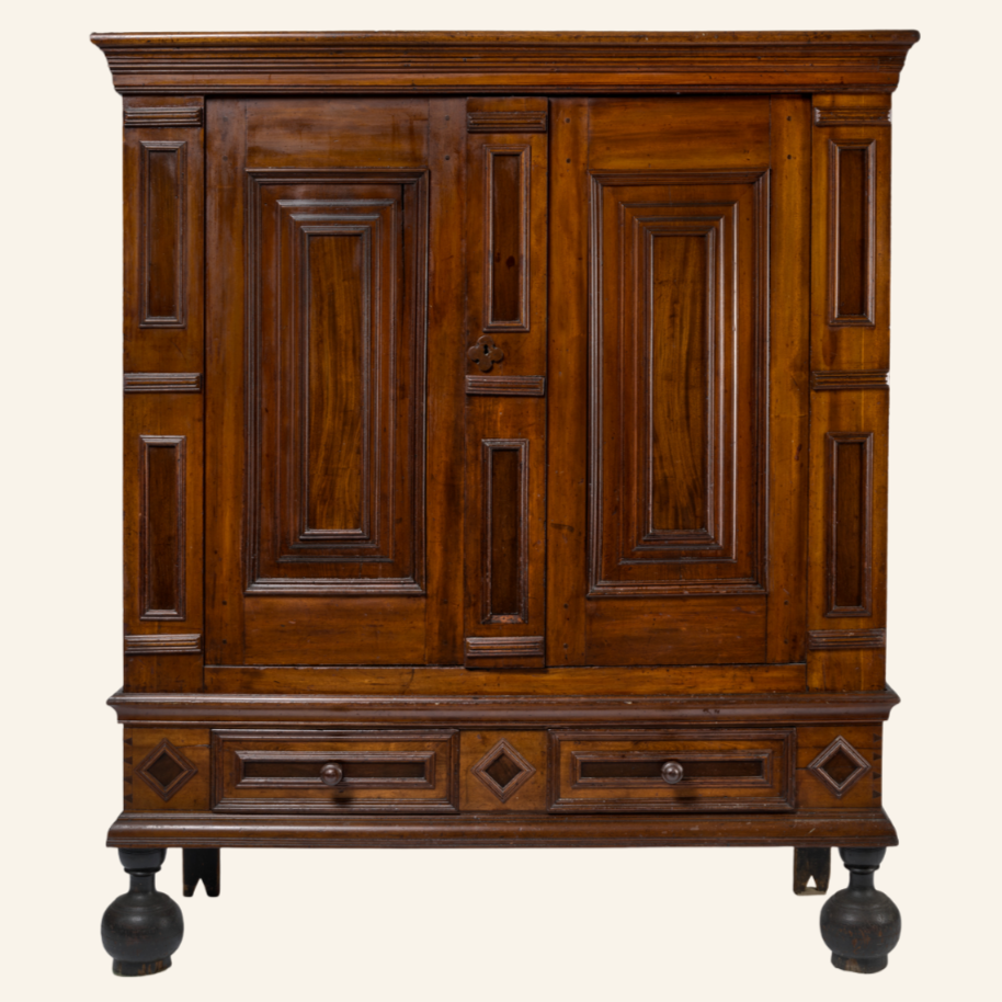 Image Credit: Kast, c. 1710–1740. American, King County, NY. Various woods, wrought iron; 196.8 x 184.2 x 69.8 cm (77 1/2 x 72 1/2 x 27 1/2 in.). The Cleveland Museum of Art, Gift of Suzanne Elmendorf Danco Doggett and Walter Ten Eyck Danco on behalf of the Elmendorf, Ten Eyck and Danco family 2019.59